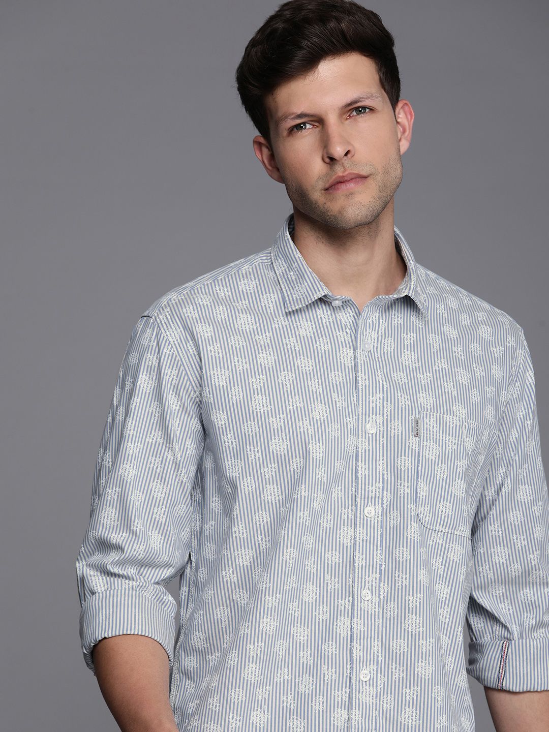 Pure Cotton Slim Fit Floral Printed Striped Casual Shirt