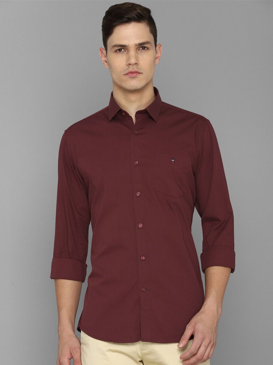 Men Burgundy Slim Fit Solid Pure Cotton Casual Shirt