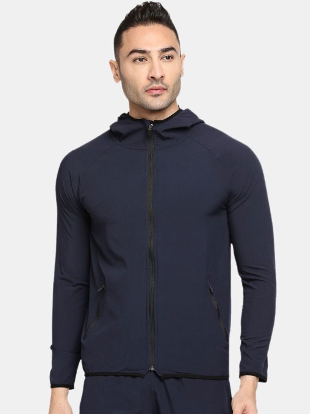 Chkokko Men Navy Blue Solid Running Sporty Jacket