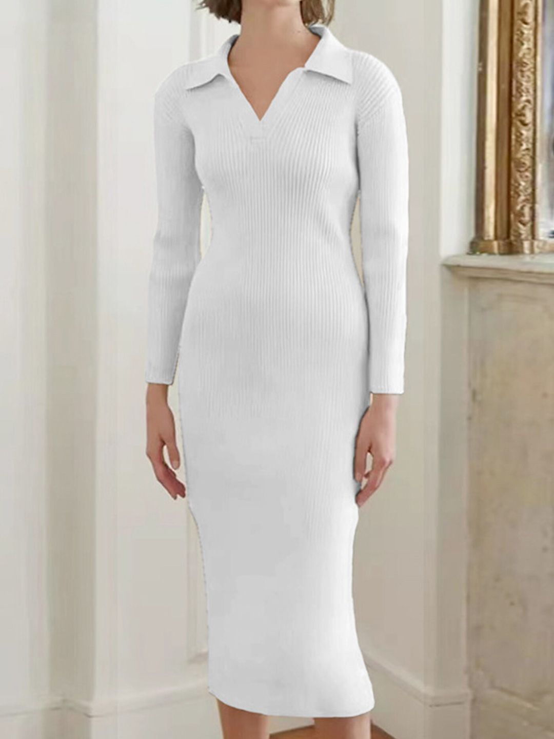 White Square Neck Solid Long Sleeves Above Knee Bodycon Polyester Dress