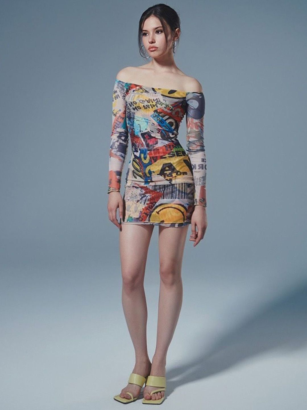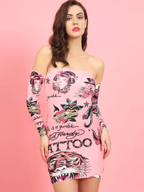 Women Print Off-Shoulder Bodycon Mini Dress