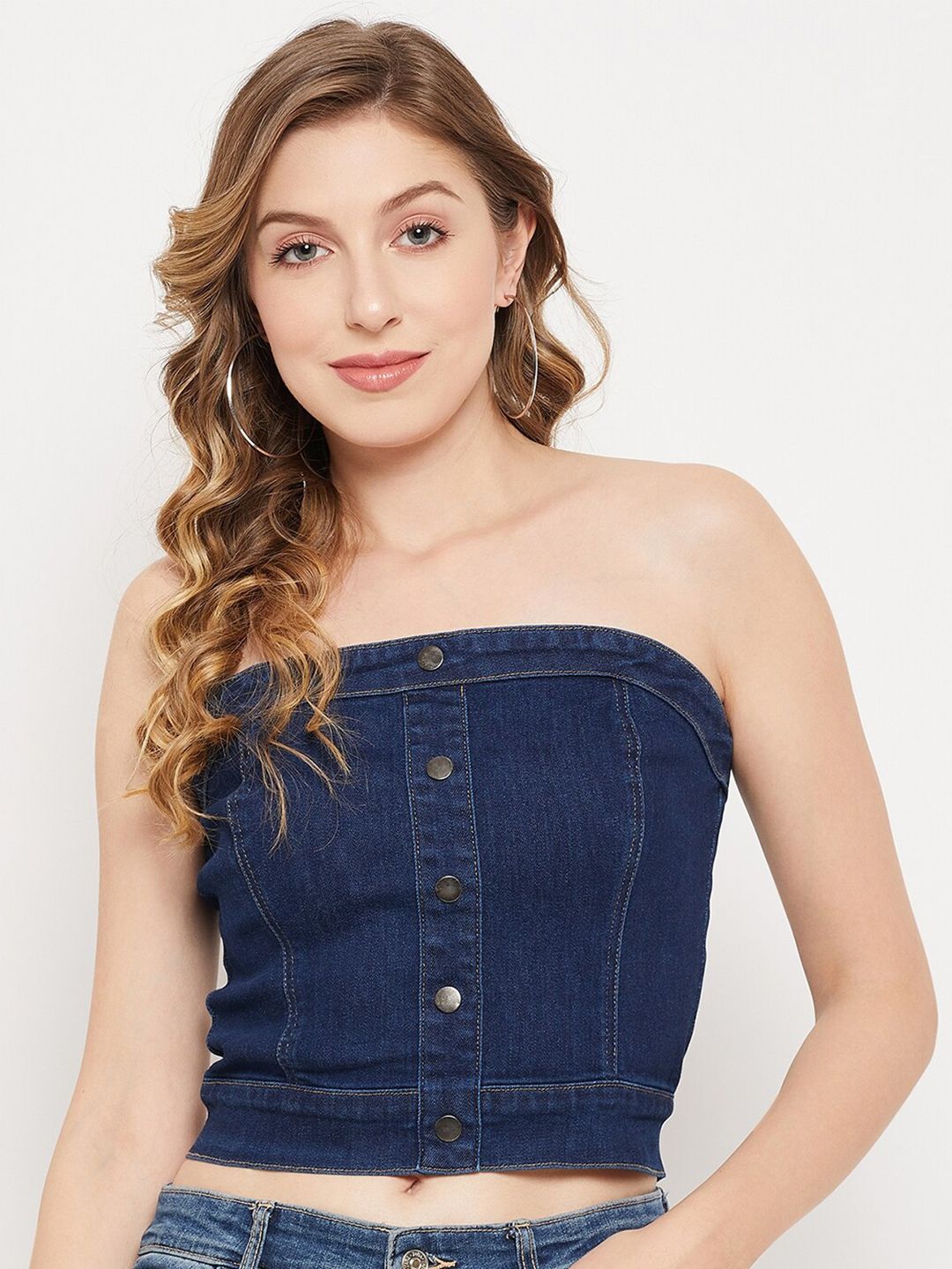 Women Blue Denim Tube Crop Top