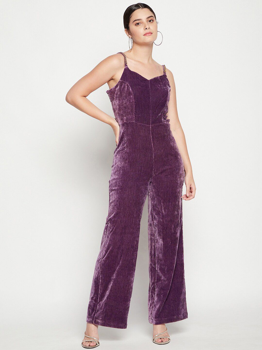 Women Purple Velvet Basic Jumpsuit