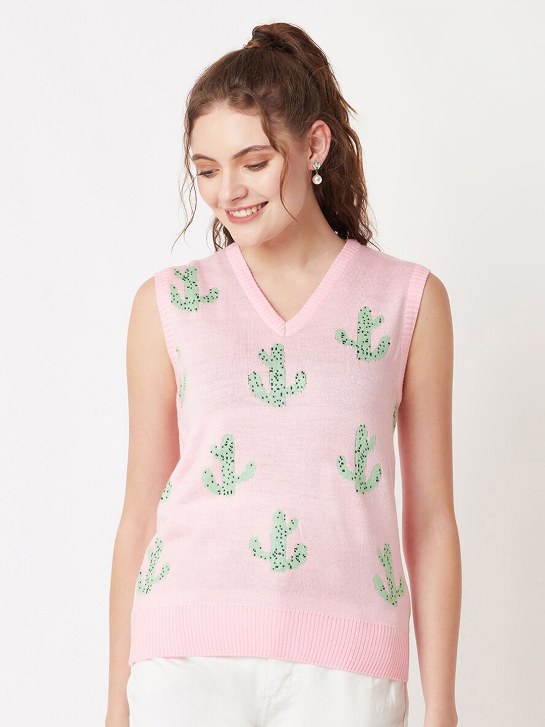 Women Peach-Coloured Acrylic Cable Knit Sweater Vest
