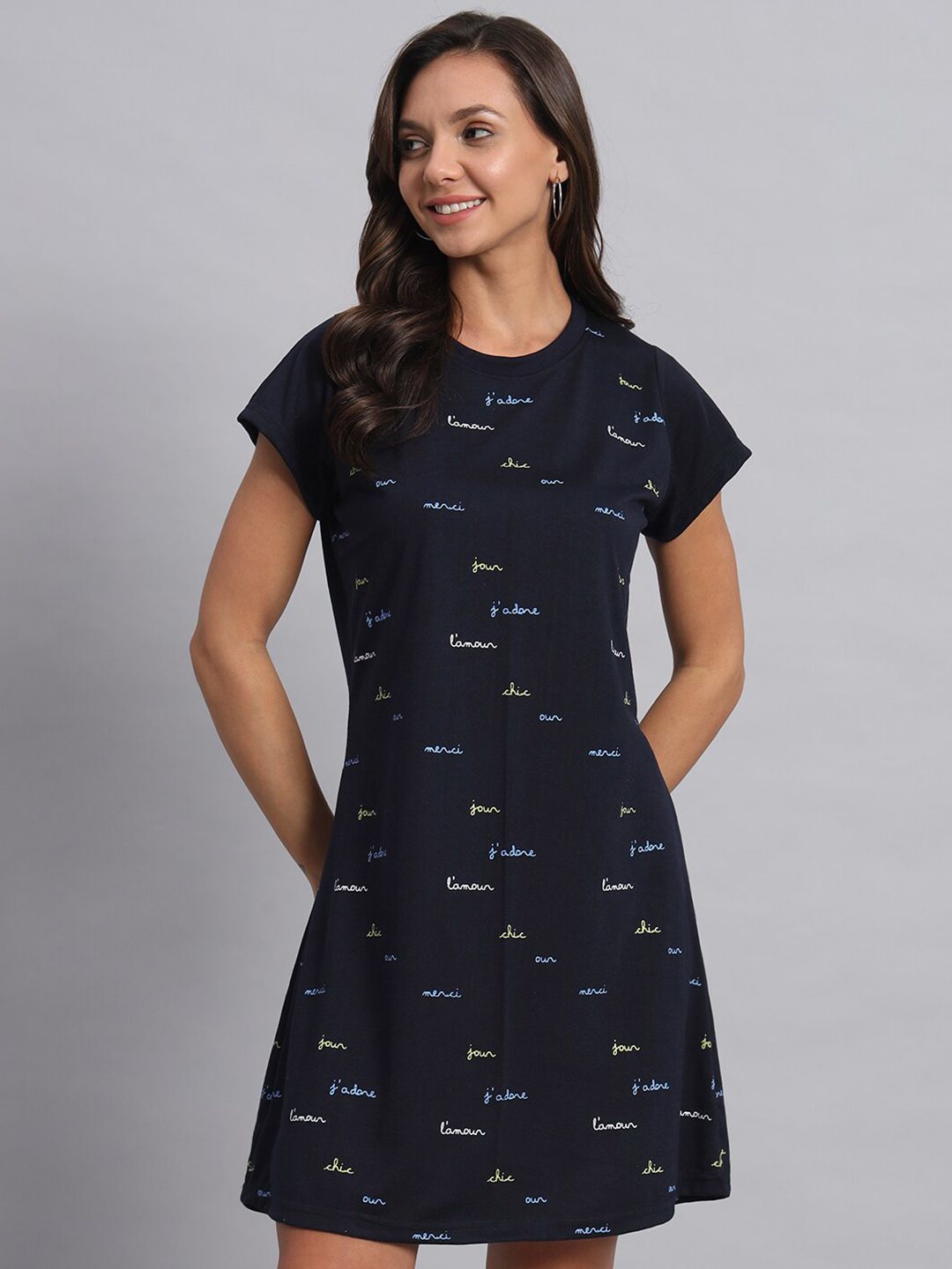 Printed Round Neck Short Sleeves Cotton T-shirt Dress