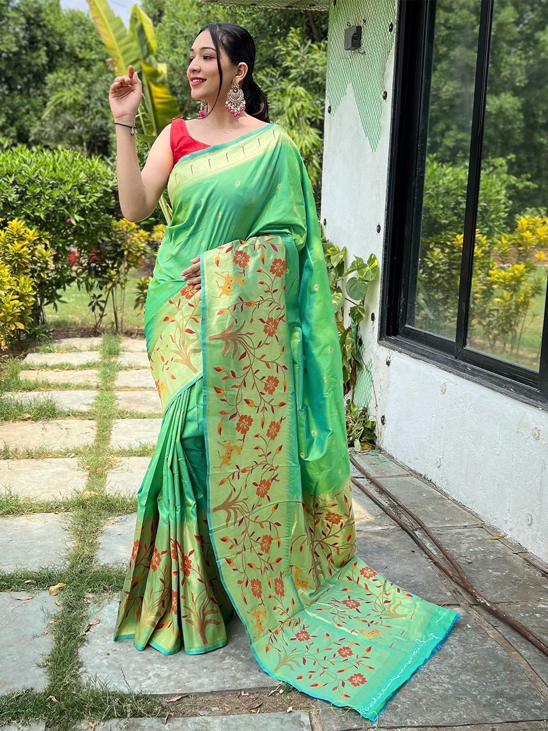 Floral Woven Design Zari Paithani Saree