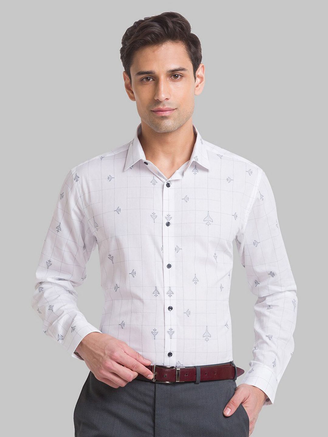 Men White Slim Fit Printed Organic Cotton Formal Shirt
