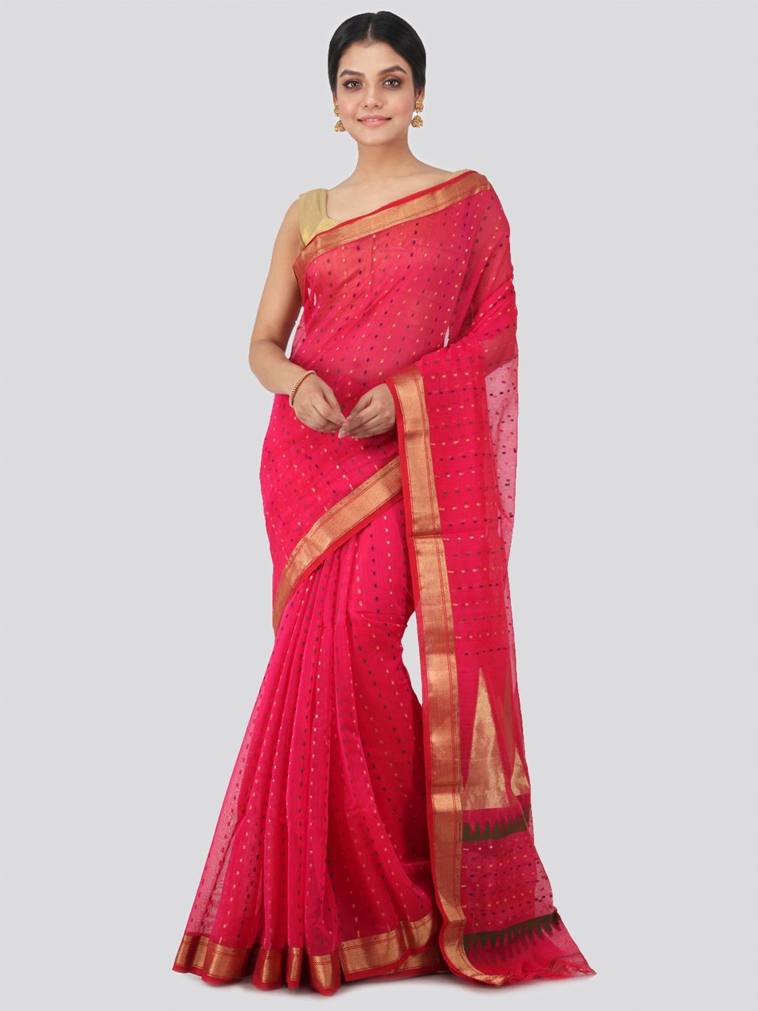 Pink Woven Design Pure Cotton Jamdani Sustainable Saree