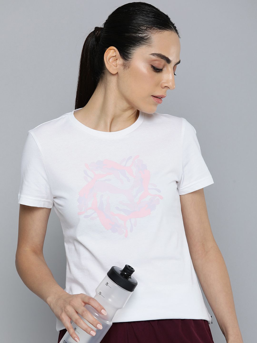 Women Pink Printed Round Neck T-shirt