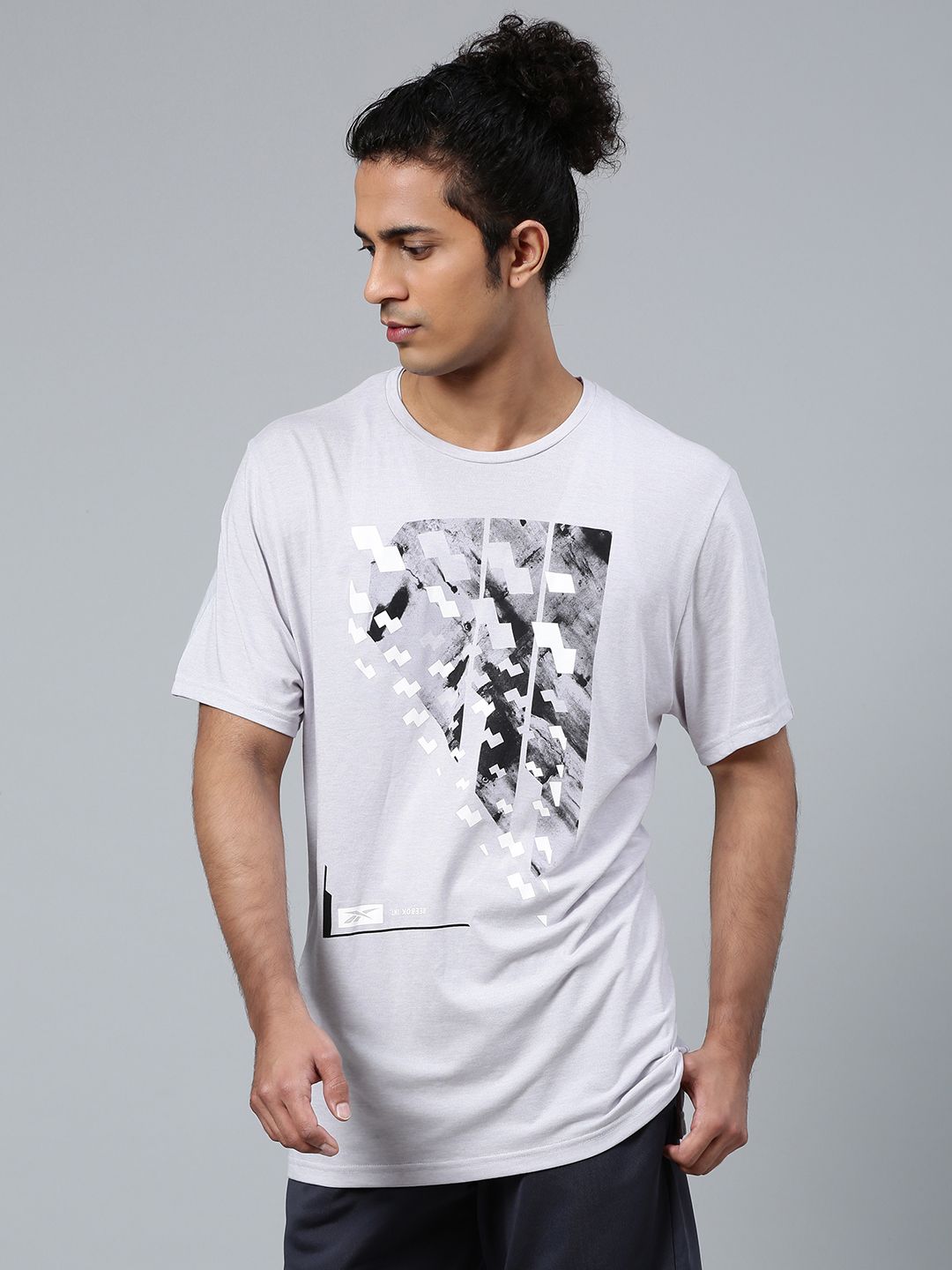 Men Grey Melange & Black Printed Activchill+Cotton Training T-Shirt
