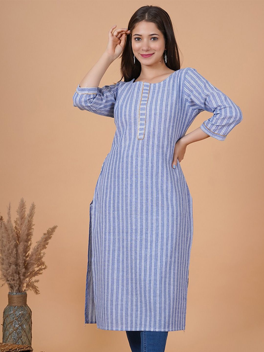 Striped Pure Cotton Straight Kurta