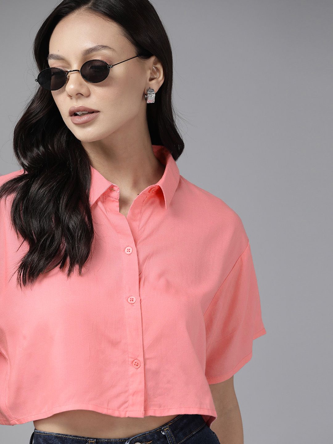 The Lifestyle Co Women Peach-Coloured Solid Casual Shirt