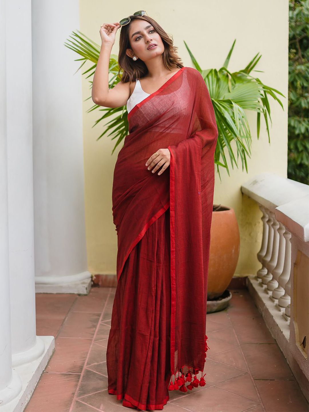 Pink & Red Ombre Dyed Ready to Wear Saree