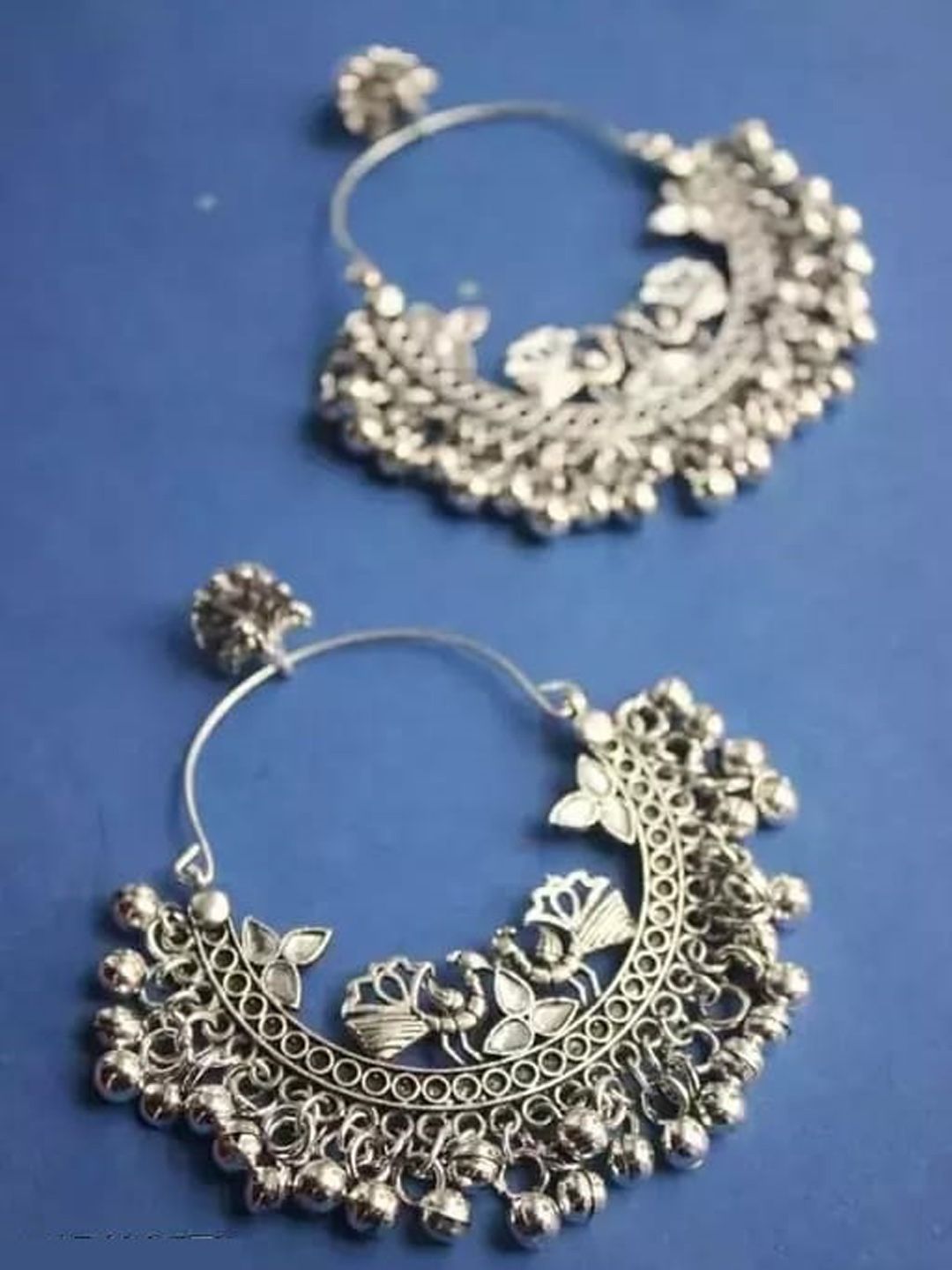Silver-Plated Oxidised Contemporary Chandbalis Earrings