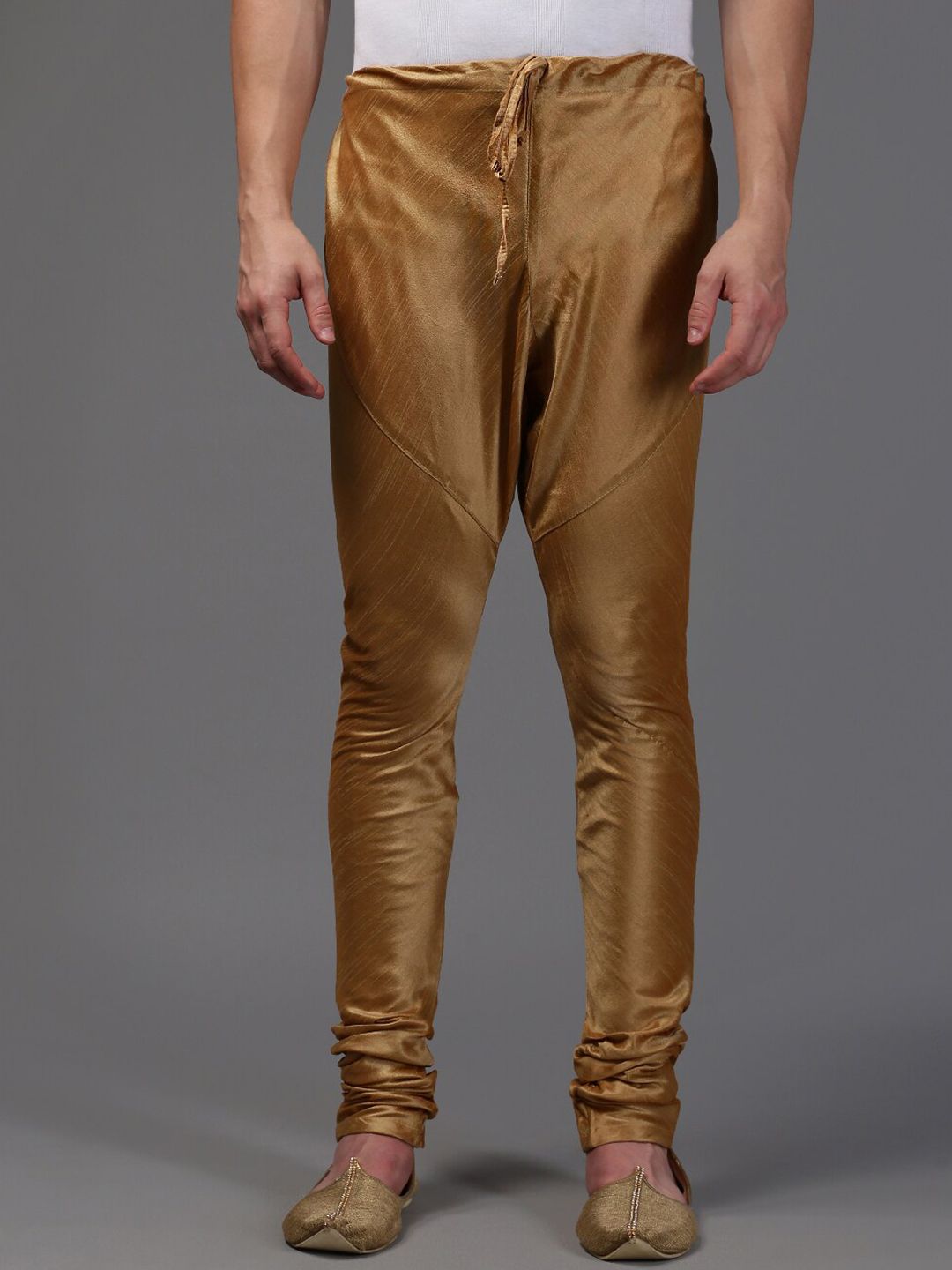 Women Gold-Coloured Solid Churidar-Length Leggings