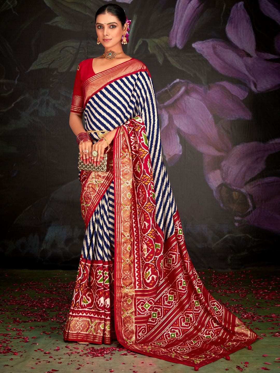 Navy Blue & Red Ethnic Motifs Printed Patola Saree
