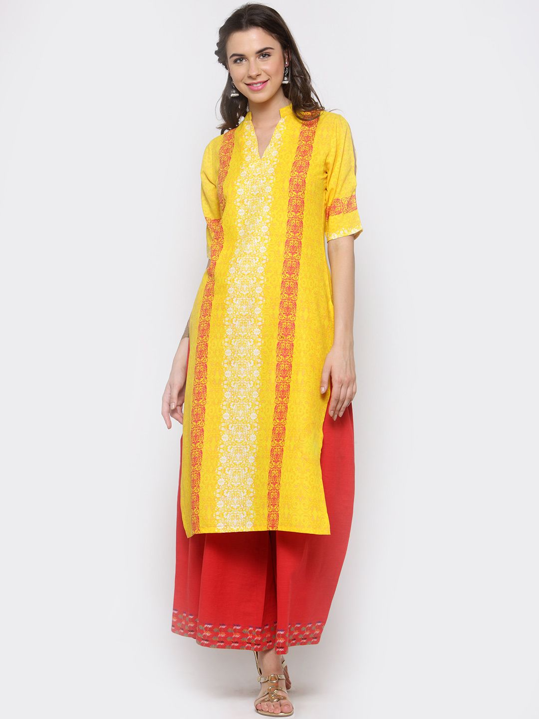 Women Yellow Ethnic Motifs Printed Cotton Kurta with Palazzos