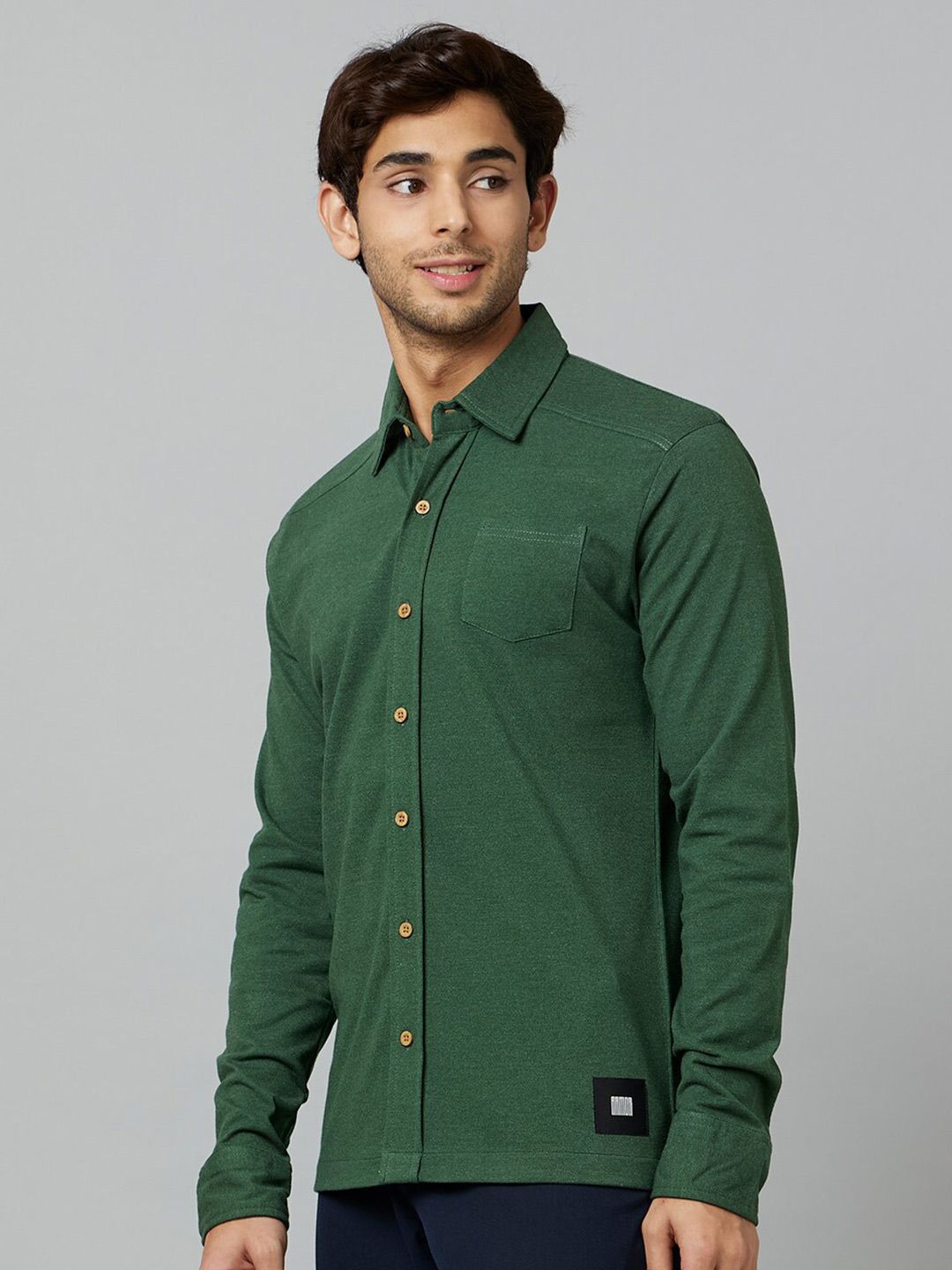 Green Slim Fit Pure Cotton Casual Shirt