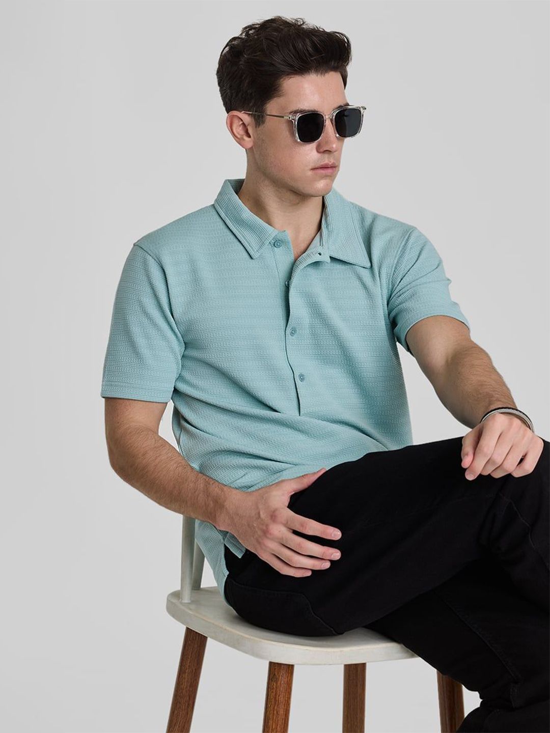 Men Comfort Cuban Collar Short Sleeves Boxy Textured Casual Shirt