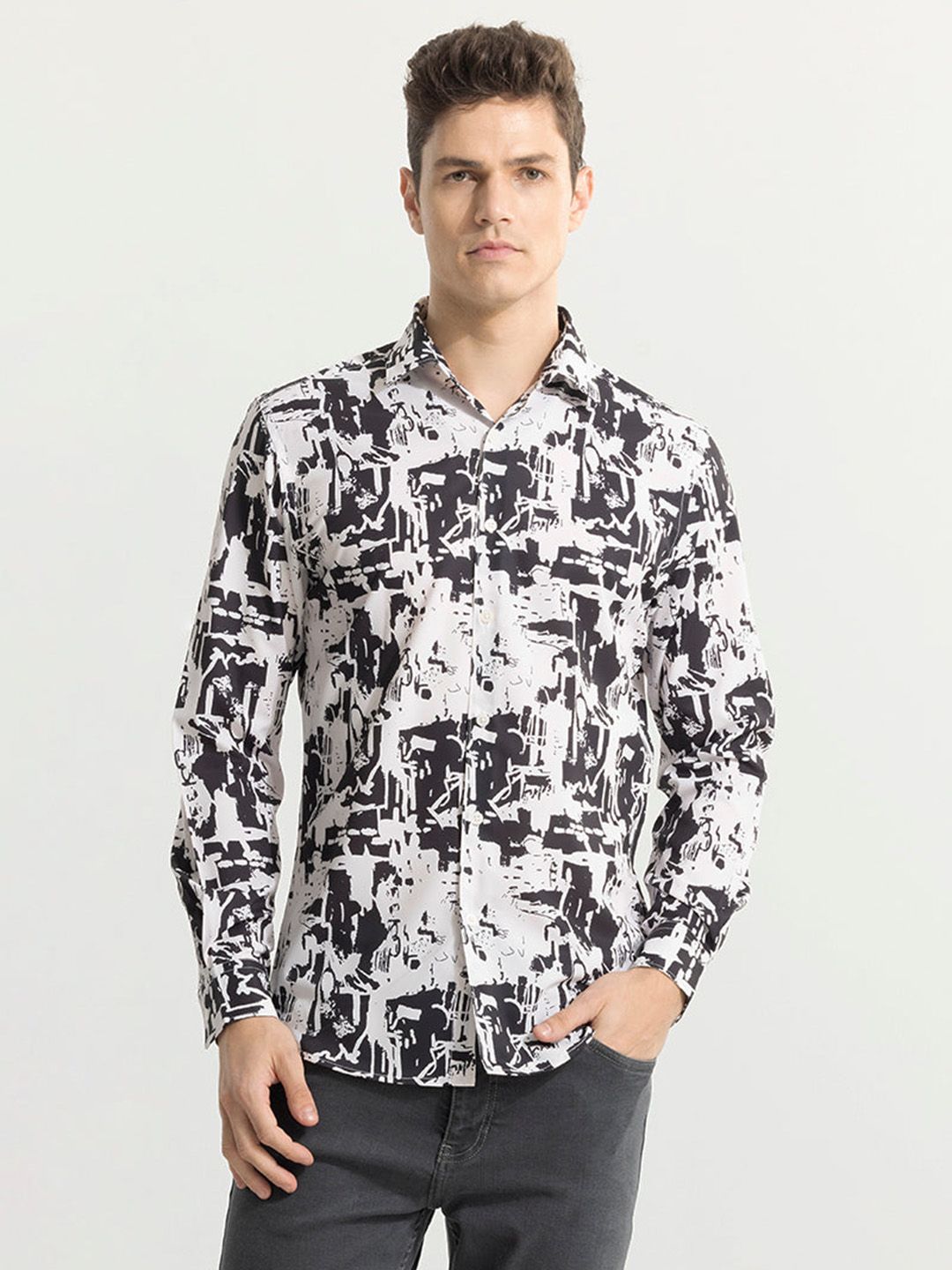 Black & White Abstract Printed Classic Slim Fit Casual Shirt