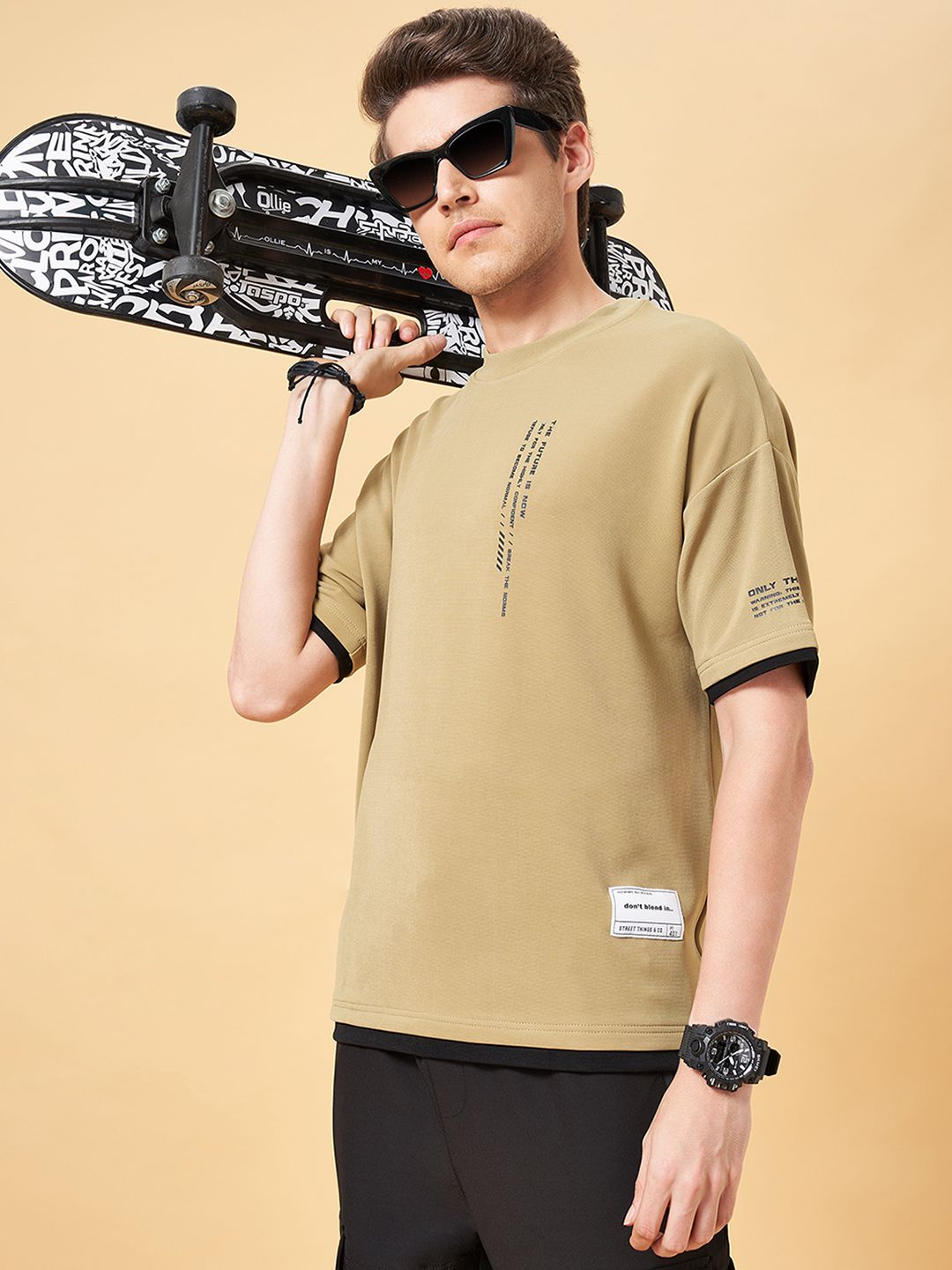 Earthy Beige Hyper Hypo Drop-Shoulder Sleeves Pure Cotton Oversized T-shirt