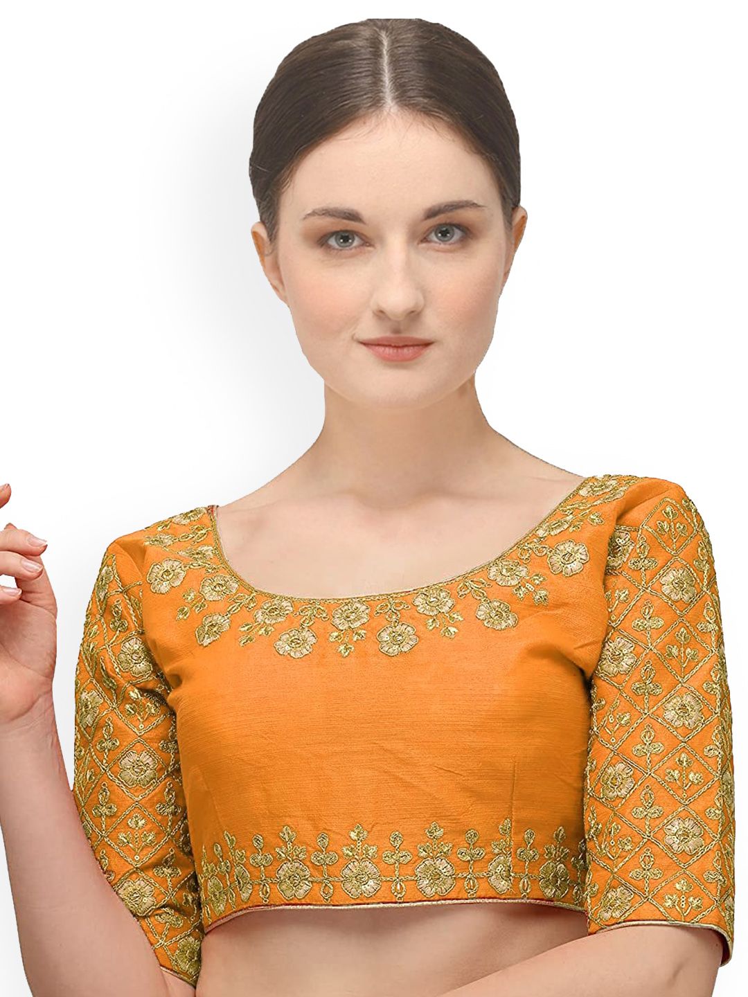 Women Orange & Gold Embroidered Ready-Made Saree Blouse