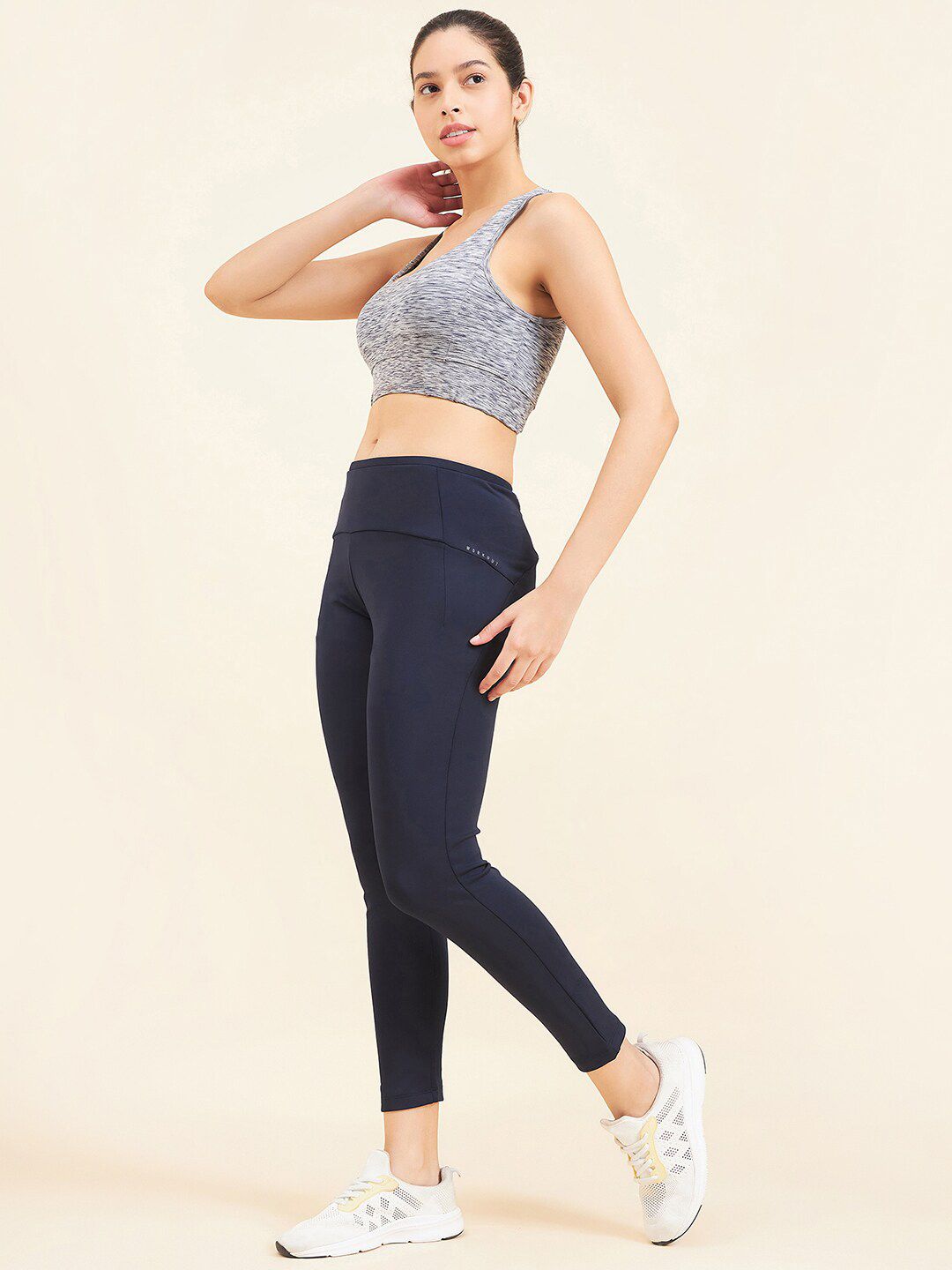 Navy Blue Slim Fit Ankle-Length Gym Tights