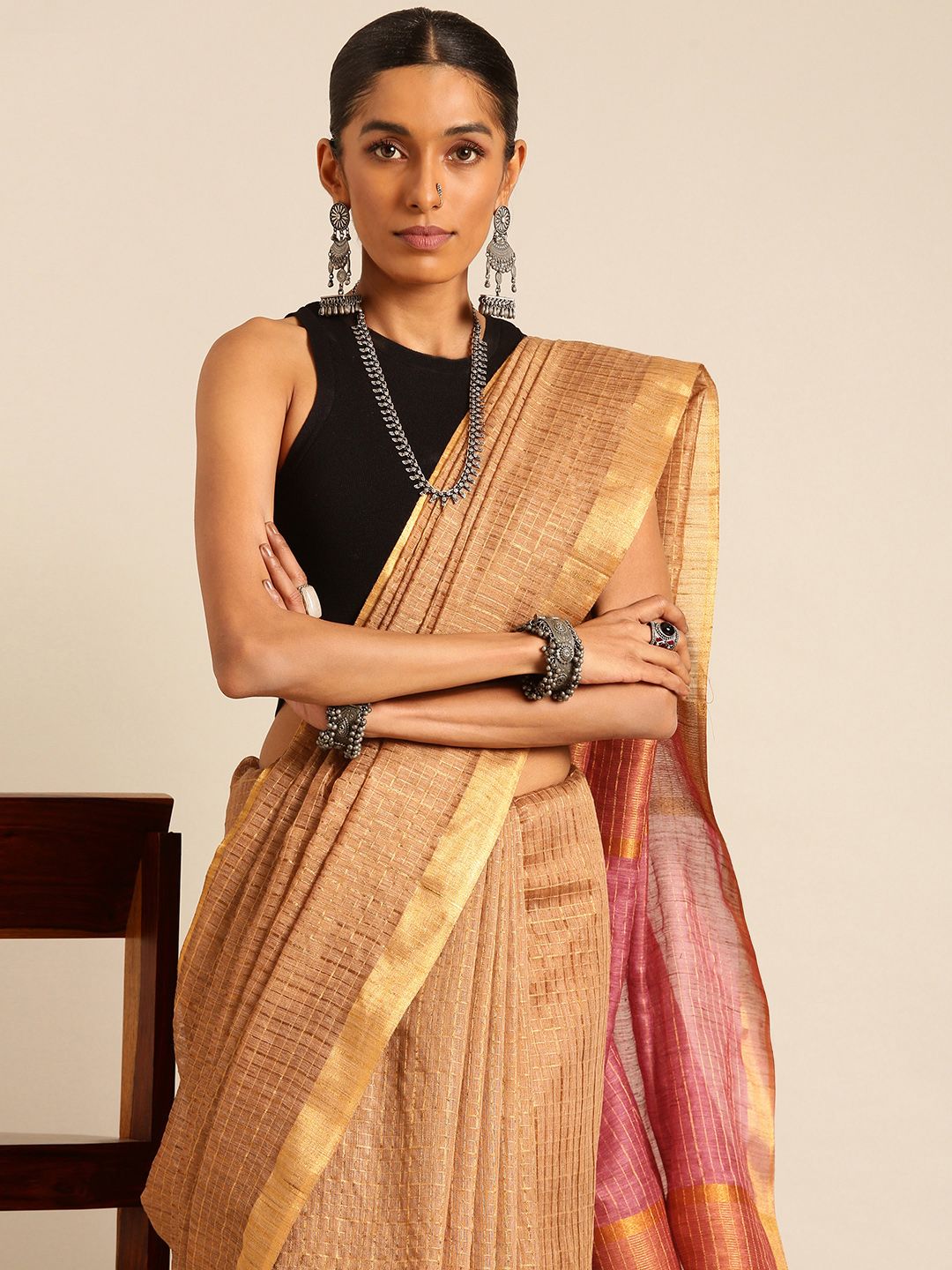 Checked Zari Handloom Saree