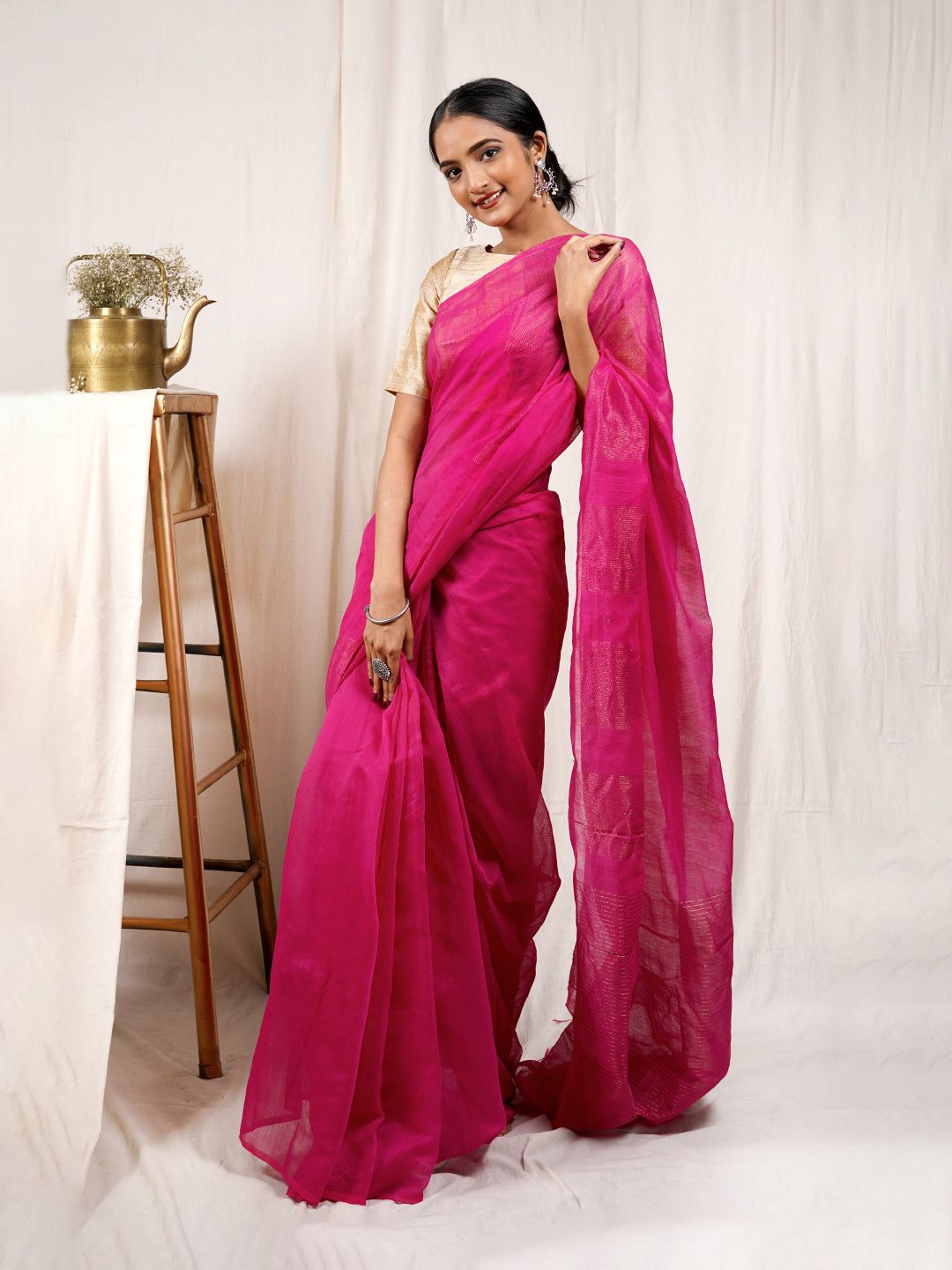 Ethnic Motif Pure Cotton Taant Saree