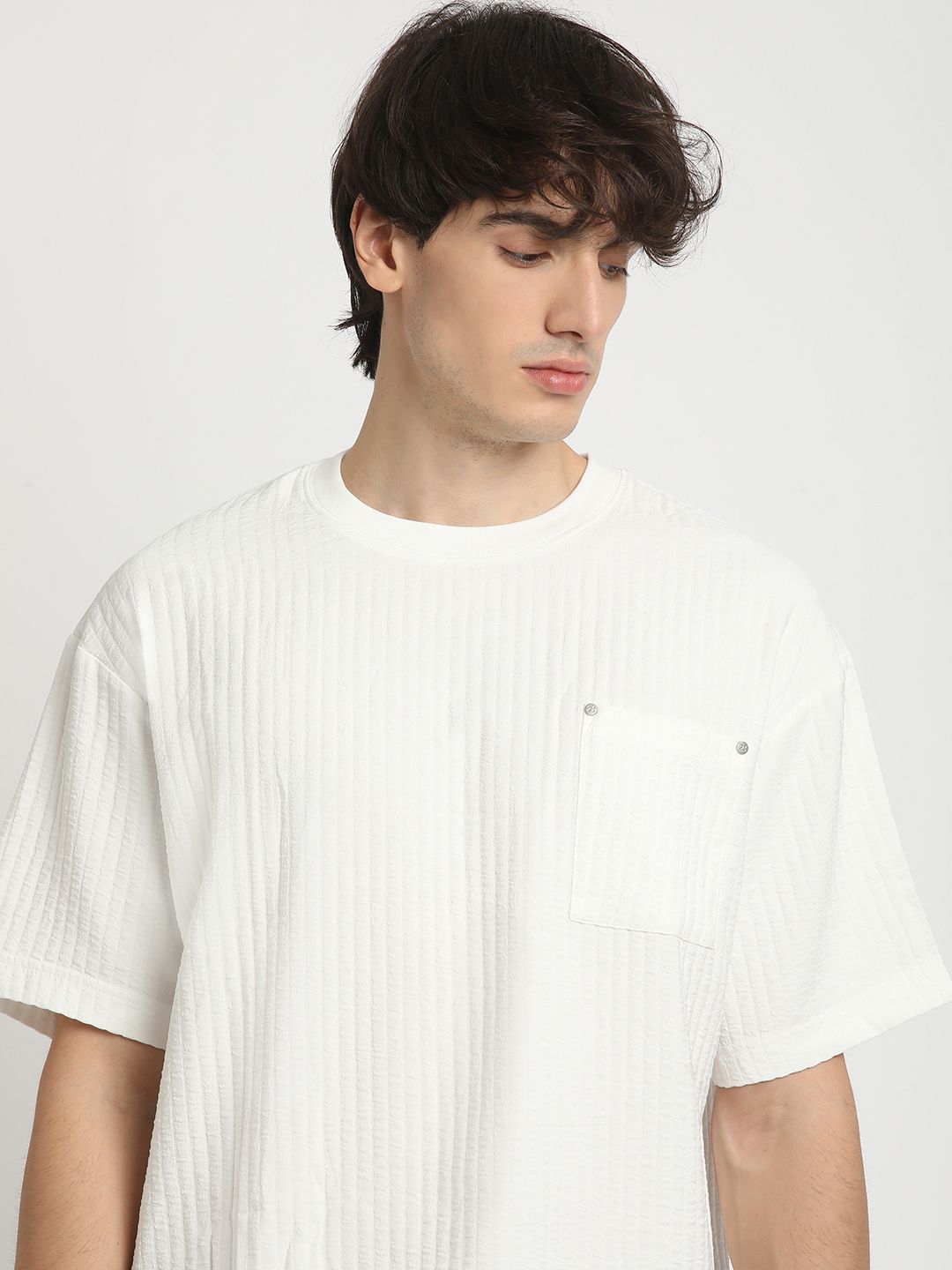 Self Design Round Neck Drop-Shoulder Sleeves T-shirt