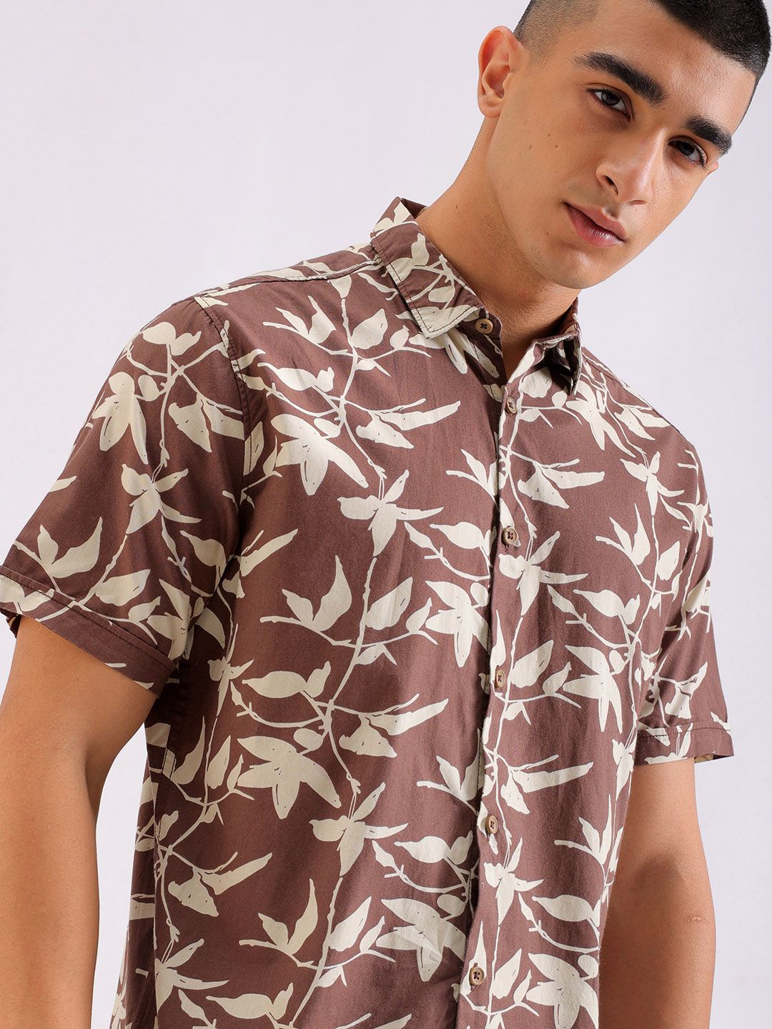 Brown Floral Printed Classic Fit Casual Shirt