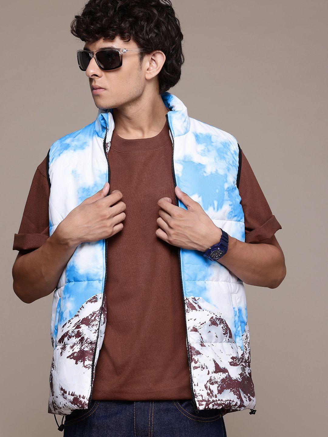 The Lifestyle Co. Men White And Light Blue Colourblocked Hooded Padded Jacket