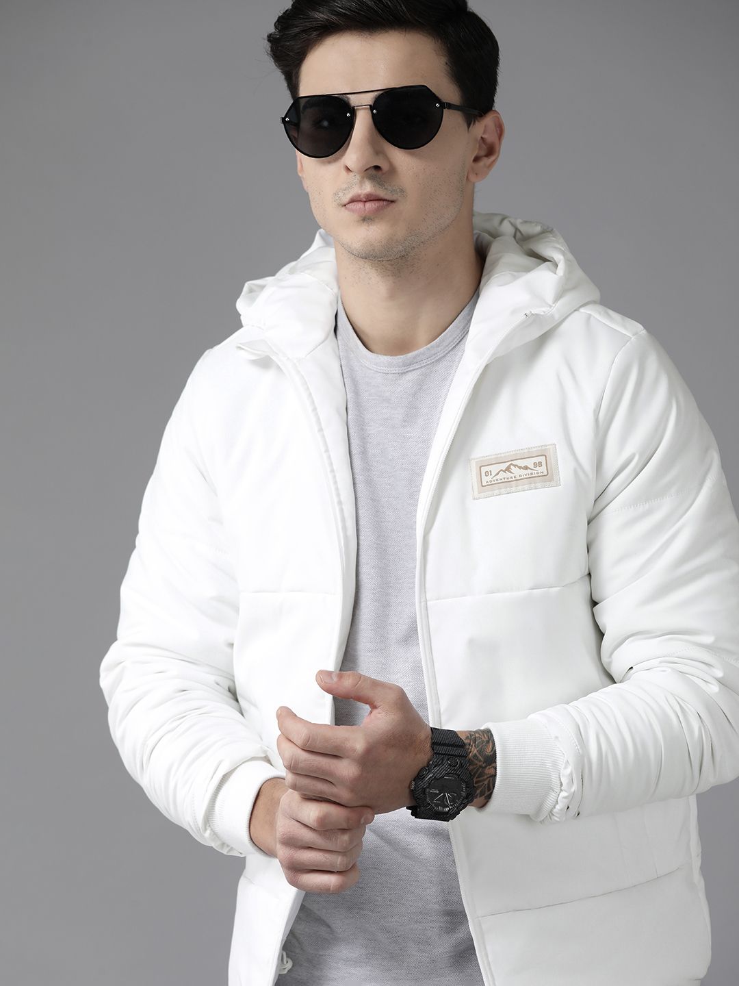 The Lifestyle Co. Men Off White Sherpa Tailored Jacket with Detachable Hood
