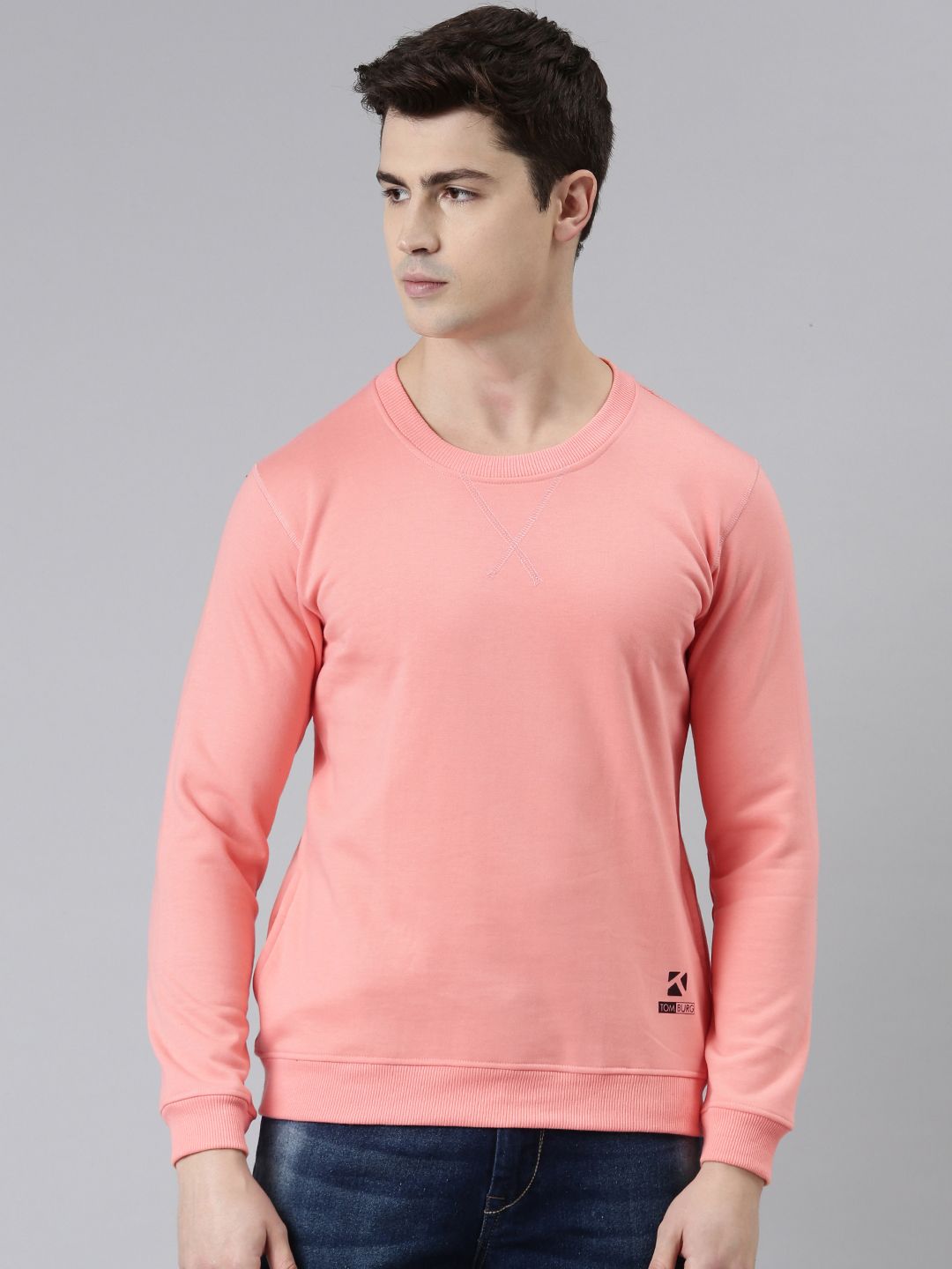 Men Peach Pink Solid Sweatshirt With Brand Logo Embroidered Detail