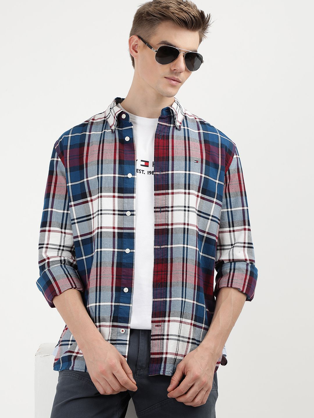 Regular Fit Button Down Tartan Checked Shirts