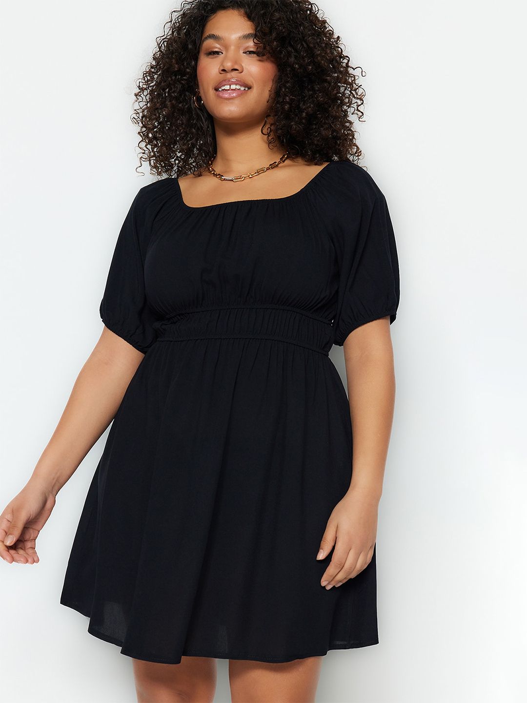 TheRebelinme Plus Size Women Black A-Line Midi Dress