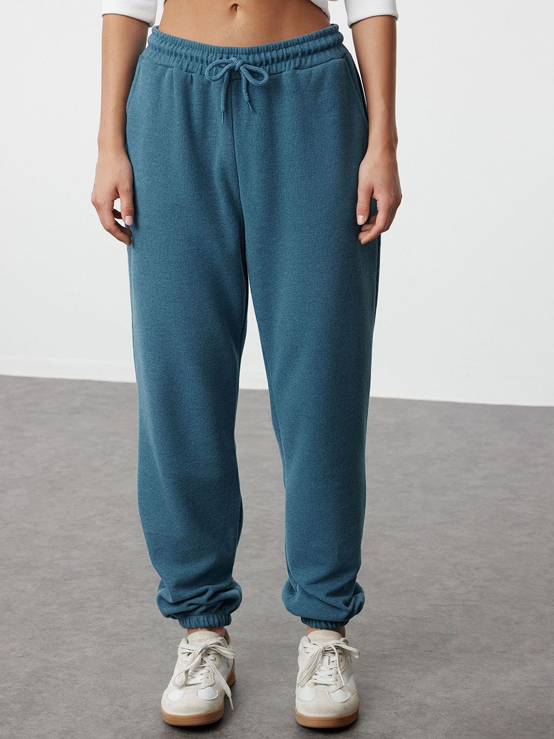 Women Plus Size Blue Pure Cotton Slim Fit Solid Joggers