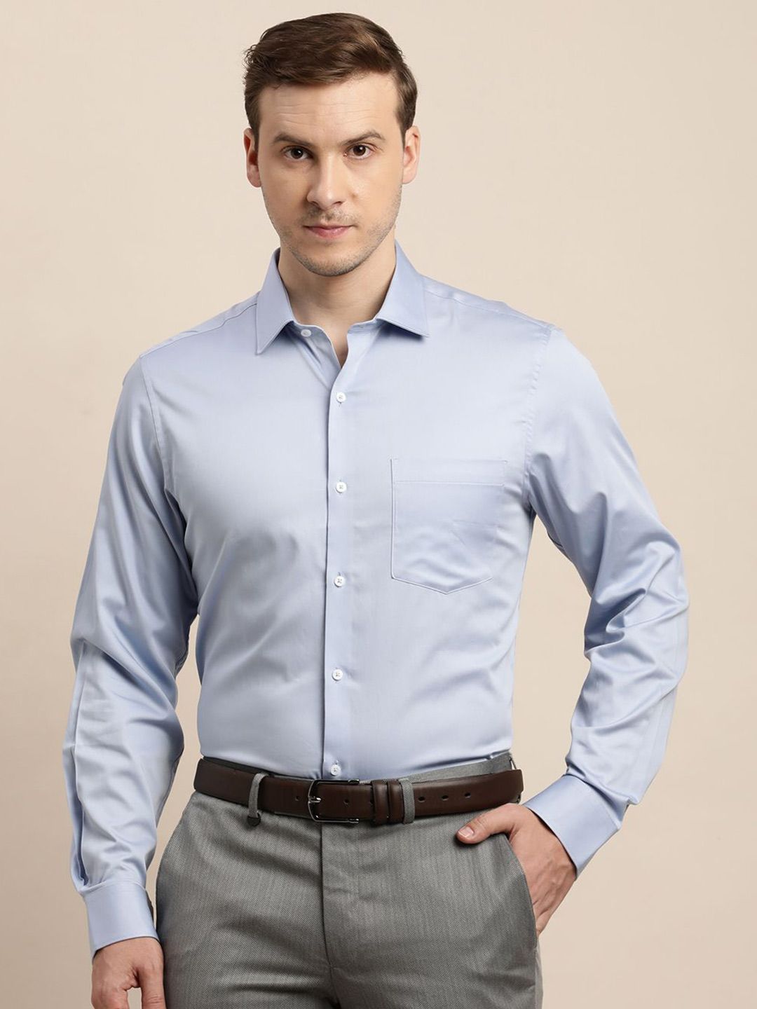 Men Light Blue Solid Slim Fit Pure Cotton Formal Shirt