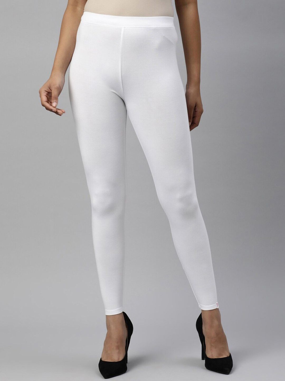 Women White Solid Slim-Fit Churidar-Length Leggings