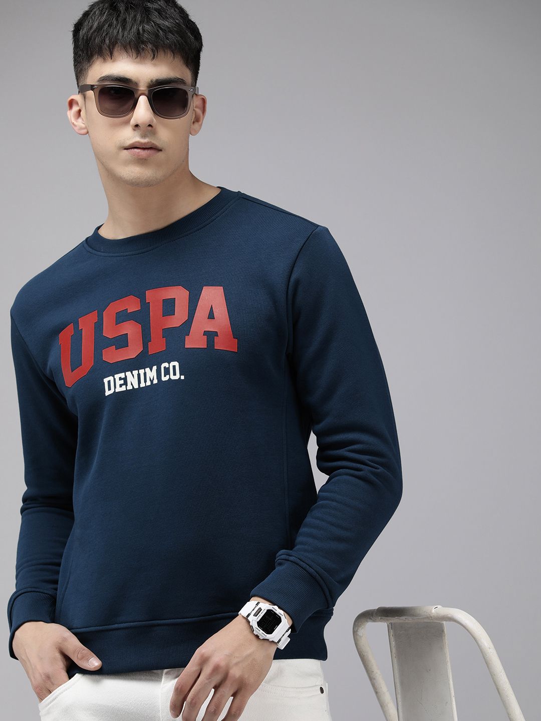 U S Polo Assn Men Navy Blue Brand Logo Printed Sweatshirt