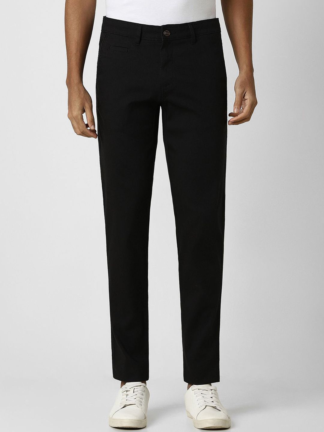 Men Mid Rise Slim Fit Plain Cotton Chinos Trousers