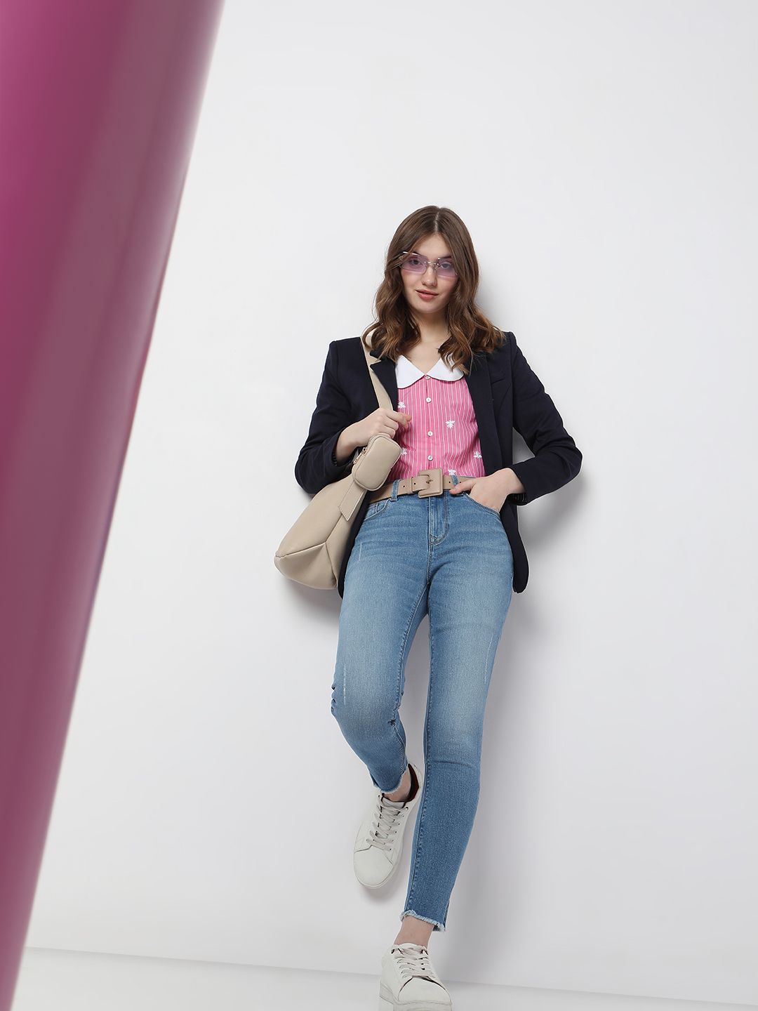 Women Blue Mildly Distressed Light Fade Stretchable Jeans
