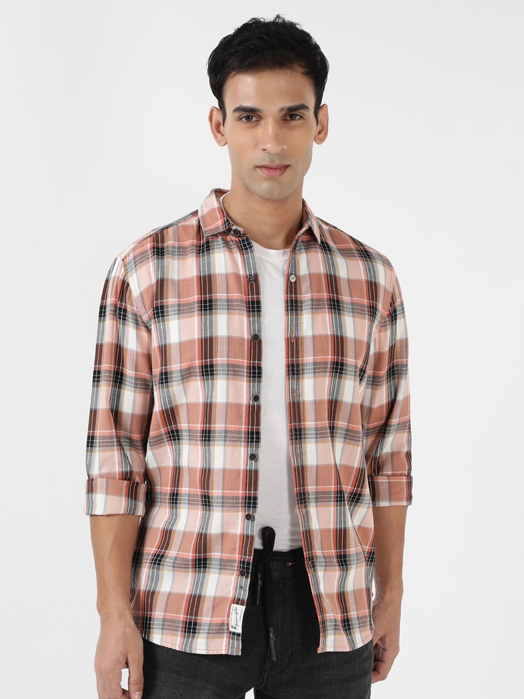 Brown & Black Tartan Checked Slim Fit Casual Shirt