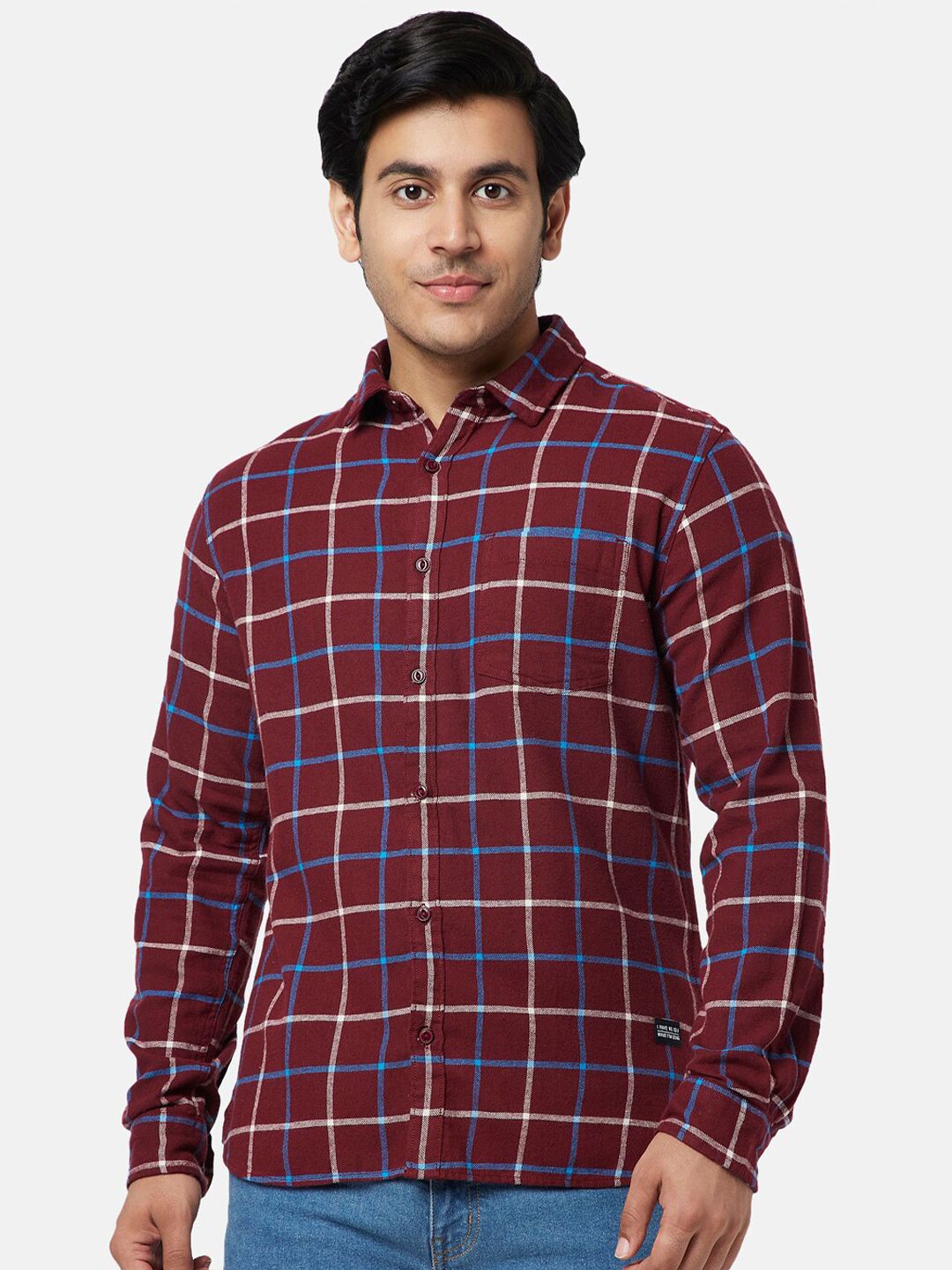 Men Maroon Cotton Slim Fit Checked Casual Shirt