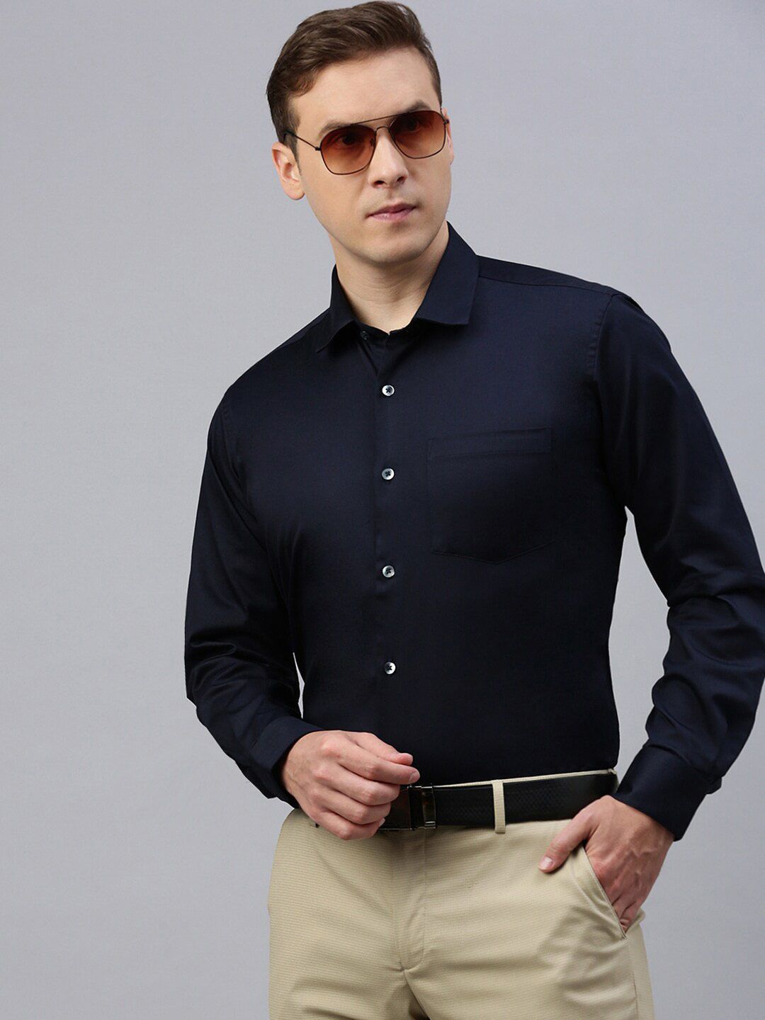 Men Navy Blue Solid Smart Regular Fit Formal Shirt